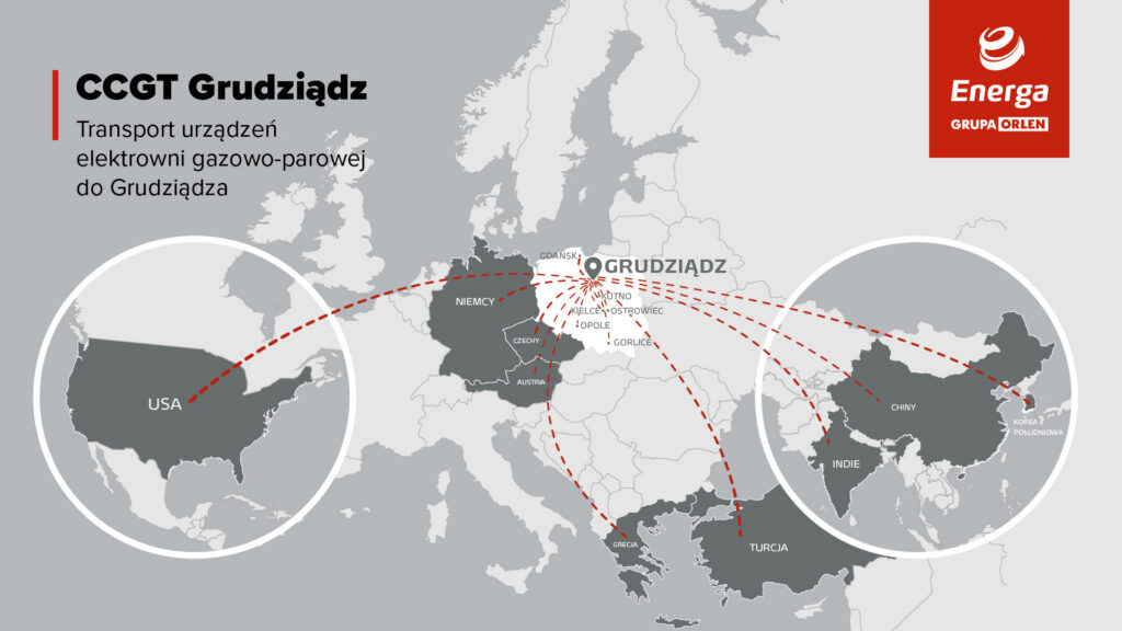 Dostawa modułów kotła odzysknicowego to pierwszy tak duży transport międzynarodowy na potrzeby budowy elektrowni gazowo-parowej w Grudziądzu. Kolejnymi urządzeniami tej skali, które zostaną dostarczone z zagranicy, będą m.in. turbozespół (czyli obie turbiny, gazowa i parowa oraz generator) i transformator blokowy wyprowadzenia mocy. Elementy te wyprodukowane zostaną w fabrykach w Niemczech, USA i Chinach. Pozostałe urządzenia i komponenty potrzebne do budowy elektrowni powstaną też w innych krajach europejskich (Grecja, Austria, Czechy) i azjatyckich (Chiny, Indie, Turcja, Korea Południowa), jak również w Polsce (Gdańsk, Gorlice, Kielce, Kutno, Opole czy Ostrowiec).