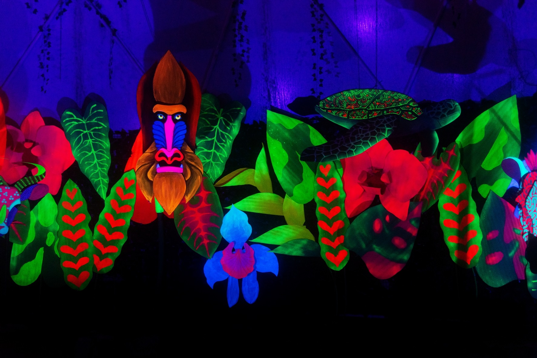 Wystawa oferuje również możliwość zanurzenia się w wyjątkowym świecie światła i fluorescencyjnych efektów. W strefie UV znajdują się powiększone fluorescencyjne maski zwierząt, które potęgują wrażenia tej kolorowej przygody. Autorką projektu jest ilustratorka Zuzanna Skórska, której prace stanowią prawdziwą ucztę dla oczu i doskonałą rozrywkę dla najmłodszych.