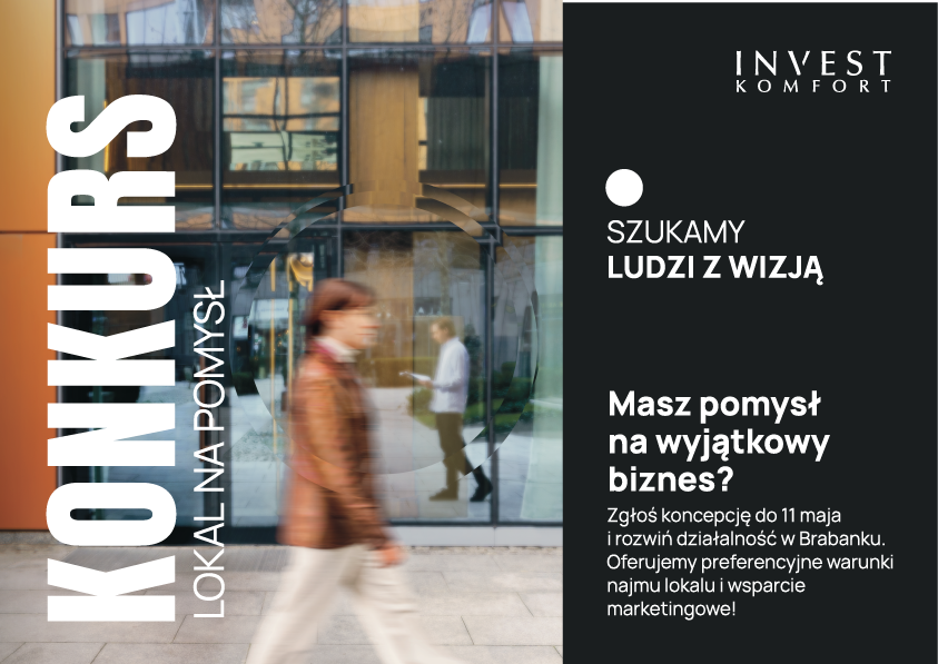 Masz pomysł na biznes, ale nie posiadasz miejsca na jego realizację albo obawiasz się wysokich kosztów najmu lokalu? Invest Komfort daje szansę na realizację marzeń organizując konkurs „Lokal na Pomysł”. Do wygrania jest umowa na preferencyjny wynajem lokalu w prestiżowej przestrzeni Brabanku w Gdańsku ze stawką wynoszącą jedynie 10 zł za m².